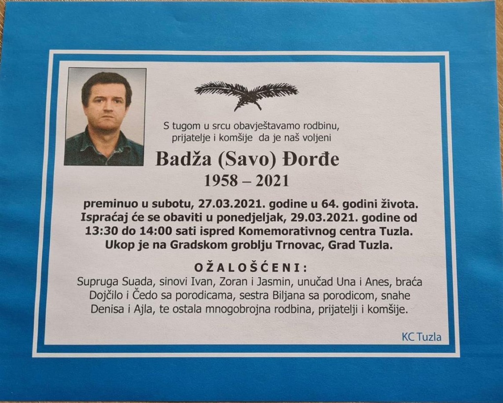 Obavještavamo kolege radioamatere da je naš kolega preminuo 27.03.2021 u 64. godini života.