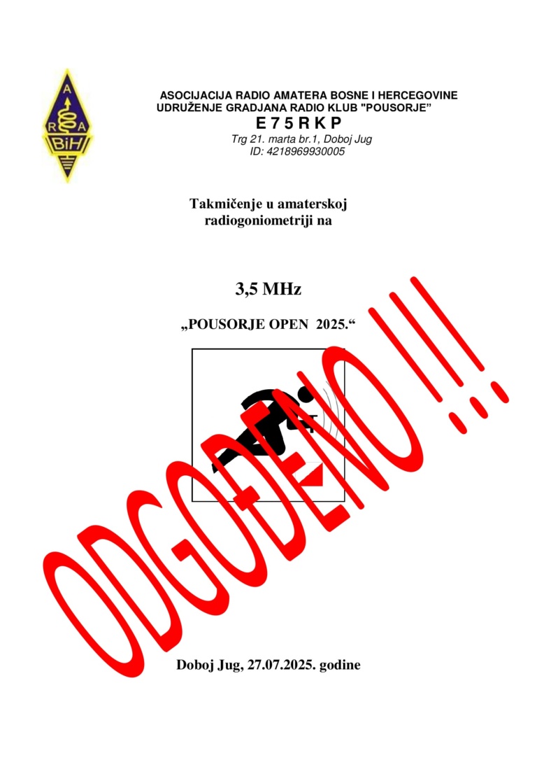 U prilogu vam dostavljamo poziv, informacije i prijavnice za ARG takmičenje na 3,5 MHz „ZAVIDOVIĆI OPEN 2025“ OTVORI...