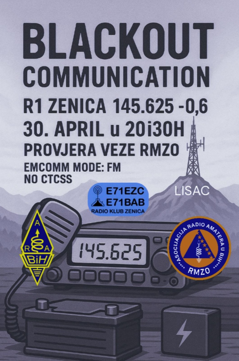 Proljetni Sked i RMZO provjera veze preko repetitora R1 Lisac Zenica, FM 145.625 PL (ctcss) 103,5 Hz, održat...