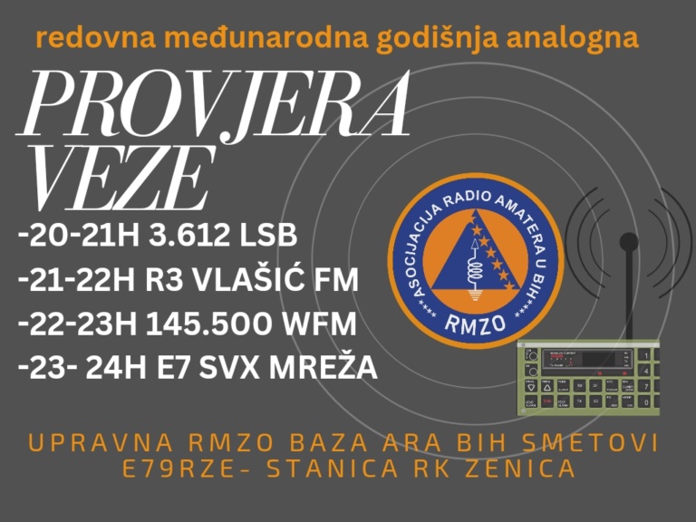 20.01.2023.g održat će se Redovna međunarodna godišnja provjera veze analognih stanica i automata u organizaciji RMZO ARAuBiH. Vježba...