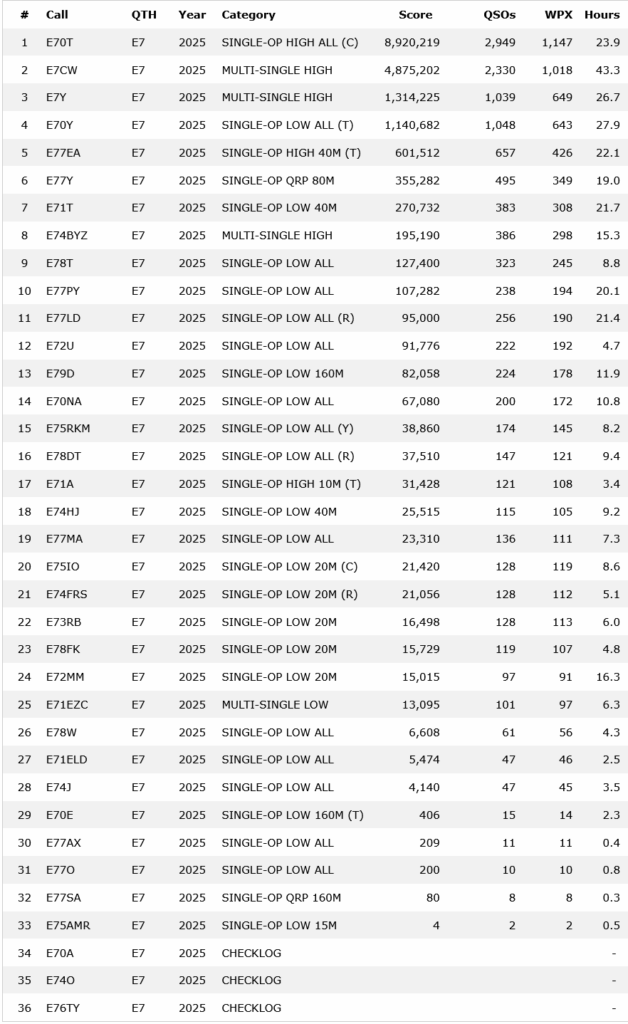 Tradicionalni internacionalni kontest “CQ WPX” (SSB dio) je održan i ove godine. Upravo su objavljeni i rezultati na stranici https://www.cqwpx.com/scoresph.htm gdje možete provjeriti vaš rang ukoliko ste se takmičili i preuzeti vaše diplome. Čestitamo svim učesnicima u ovom kontestu i želimo puno uspjeha u narednim takmičenjima.
