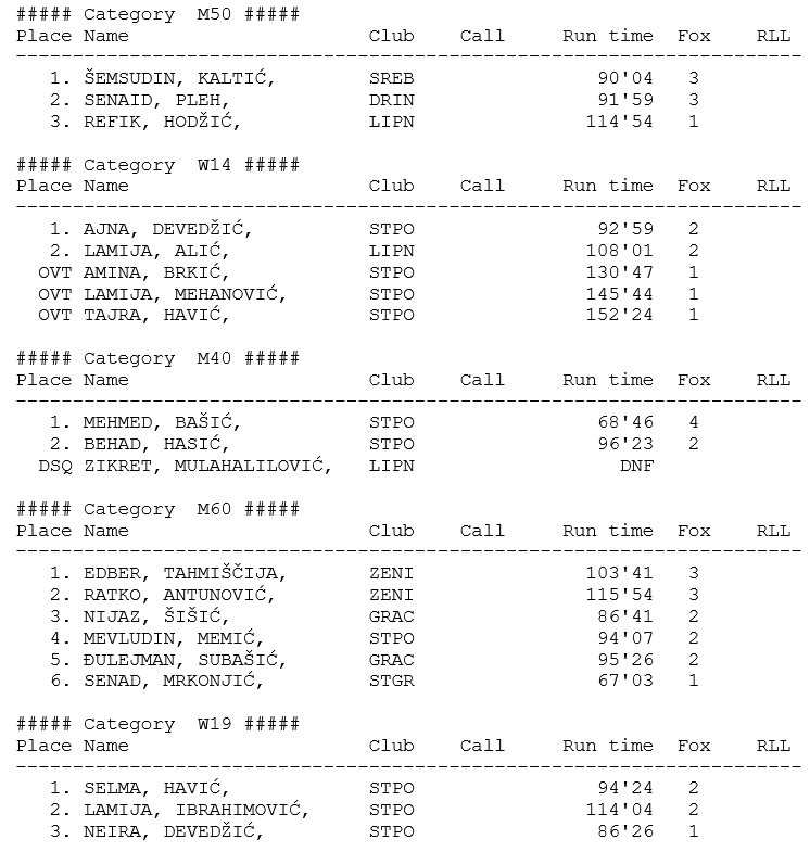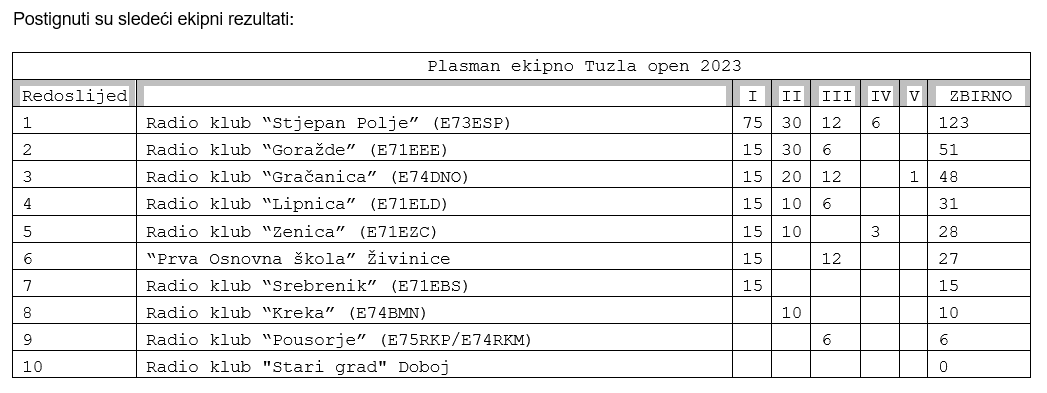 Učestvovalo je oko 50 takmičara iz sljedećih 9 klubova i 1 ekipa: Radio klub “Kreka” (E74BMN), Radio klub “Srebrenik” (E71EBS), Radio klub “Zenica” (E71EZC), Radio klub “Lipnica” (E71ELD), Radio klub “Stjepan Polje” (E73ESP), Radio klub “Gračanica” (E74DNO), Radio klub “Goražde” (E71EEE), Radio klub “Pousorje” (E75RKP/E74RKM) Radio klub “Stari grad” Doboj, i ekipa “Prve osnovne škole” Živinice.