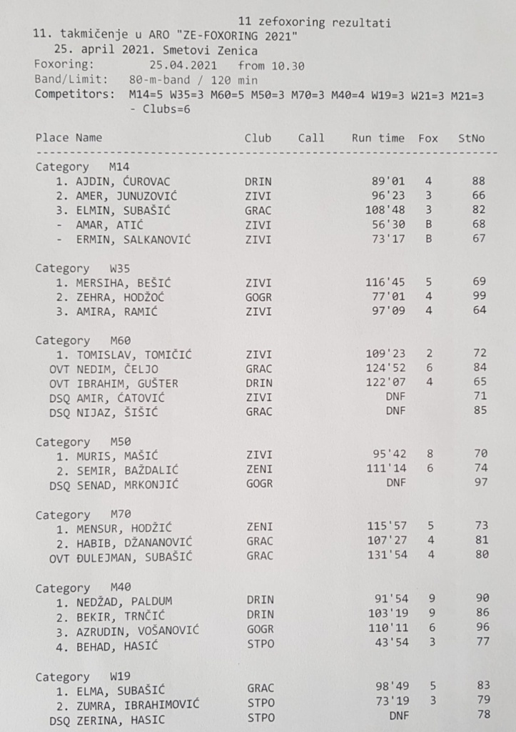 U nedjelju, 25.04.2021.g. na lokalitetu Smetovi, održan je ovogodišnji ARO “ZE-FOXORING”. Organizator, RK ZENICA je takmičenje organizovao u skladu sa preporukama Kriznih štabova vezano za pandemiju COVID-19.