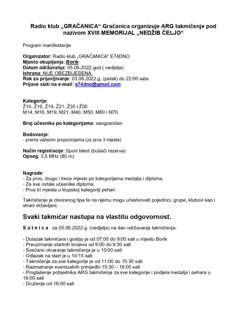 ARDF XVIII MEMORIJAL „NEDŽIB ČELJO“ 15.05.2022.ARAuBiH Navigacija članaka ← ARG takmičenje “STJEPAN POLJE OPEN”ODRŽAN “ZE-FOXORING 2022 →